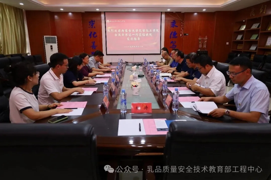9月12日,内蒙古大学化学化工学院党委书记白凤华教授率队,带领乳品质量安全控制技术党支部书记董阿力德尔图及支部党员吴海霞、张艳玲、肖豆鑫、任慧一行,赴南昌大学开展“手拉手”党建交流活动。此次活动旨在通过党建引领,进一步加强两校在食品科学、乳品质量安全与化学工程等领域的深度合作,共同推动科技创新与人才培养。