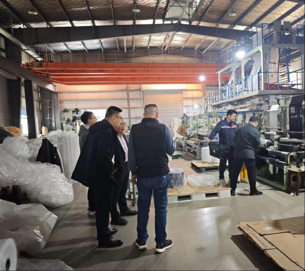 在昆山锦华塑料包装有限公司,调研团队实地考察了塑料包装吹膜生产流水线,围绕高阻隔包装材料的安全性能、行业标准体系及可持续发展路径,结合乳制品包装领域的特殊应用需求,开展深入研讨。